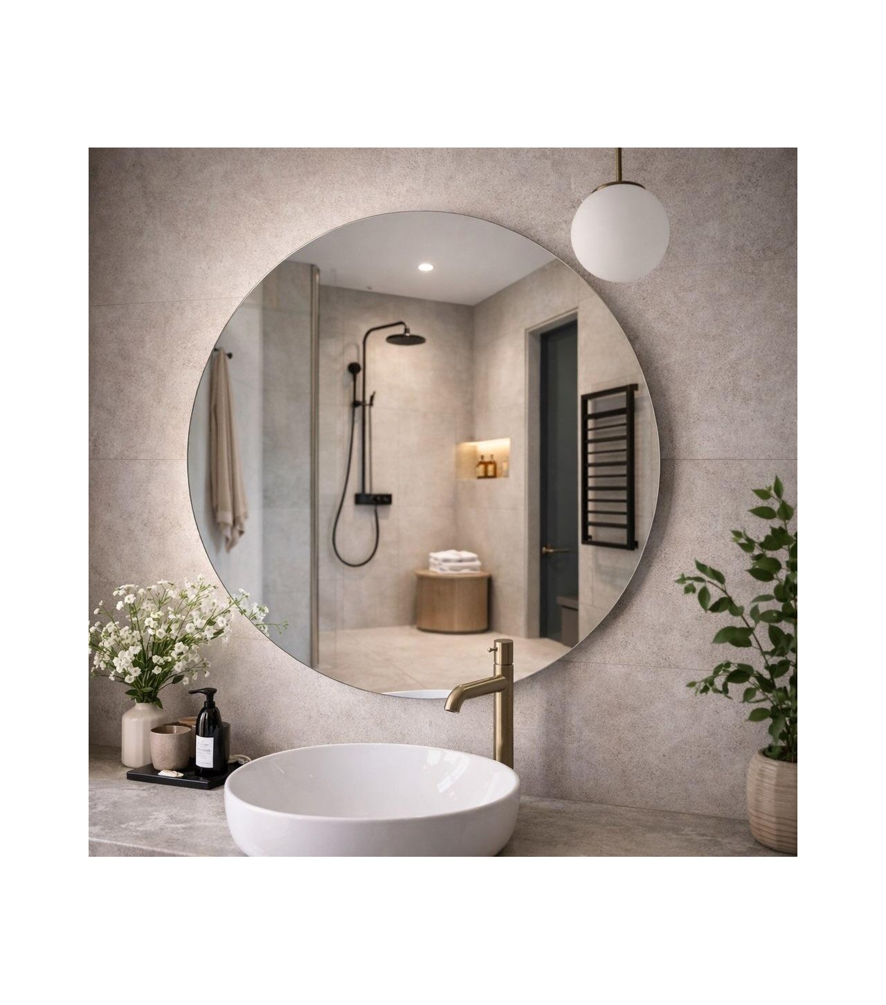 ✔️ okrągłe lustro bez ramy – średnica 90 cm