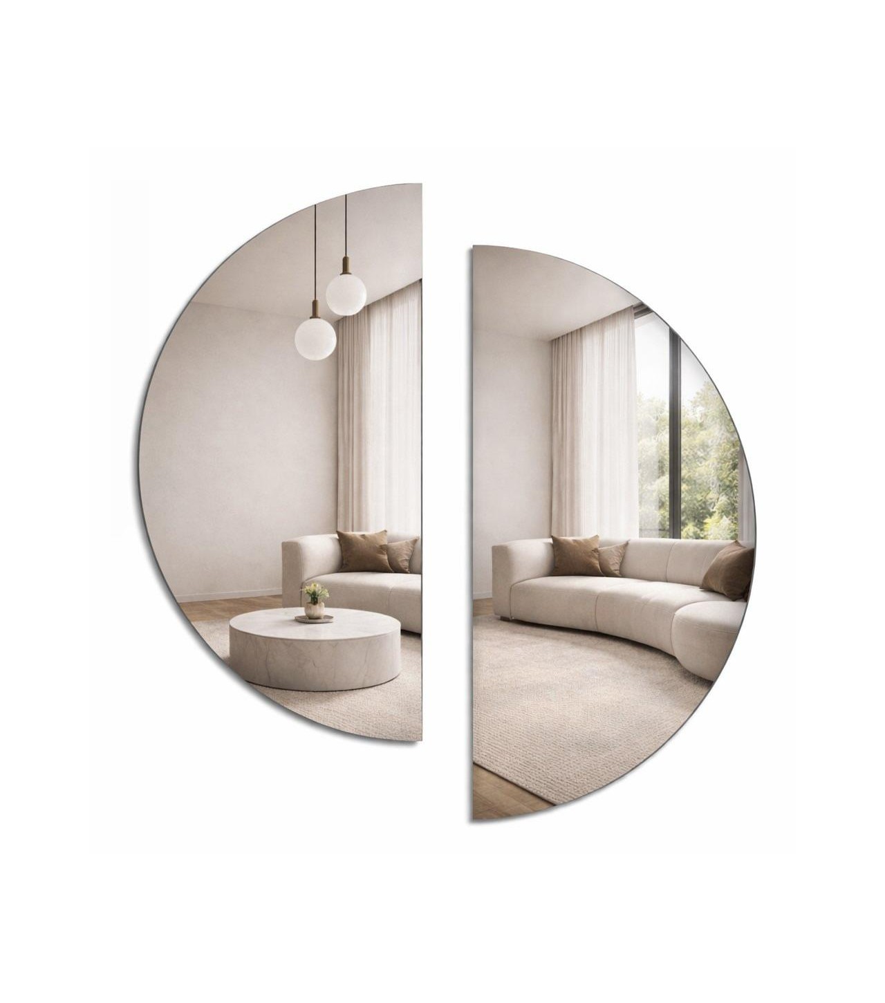 Eleganckie, bezramowe lustro o subtelnej formie półkola, zaprojektowane z myślą o nowoczesnych i ponadczasowych wnętrzach. Minimalistyczny design wprowadza lekkość i harmonię, doskonale komponując się z łazienką, salonem, sypialnią lub przestrzenią typu studio.
