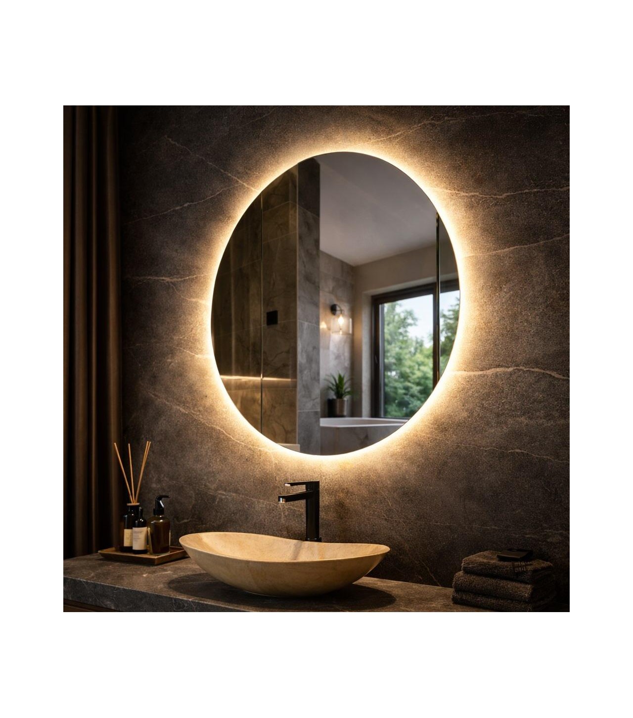 Lustro jest bezramowe, z perfekcyjnie szlifowanymi i polerowanymi krawędziami, dzięki czemu prezentuje się niezwykle nowocześnie i lekko. W standardzie oferujemy barwę ciepłą, a na życzenie dostępne są również neutralna i zimna – wybór należy do Ciebie.